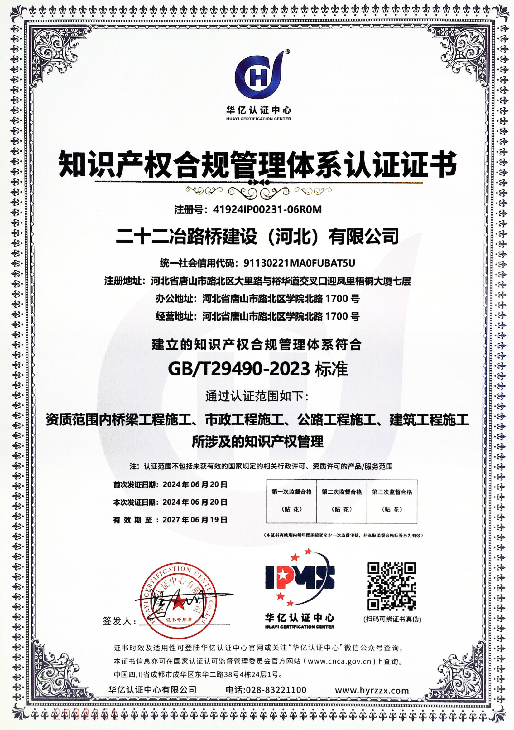 近日,二十二冶路橋建設(shè)(河北)有限公司知識(shí)產(chǎn)權(quán)貫標(biāo)成功,獲得“知識(shí)產(chǎn)權(quán)管理體系認(rèn)證證書(shū)”。